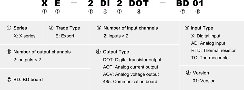 | 8 | XE-1AI1RTD-BD | 1AI, 16-битный тип тока; 1-полосный терморезистор, поддержка PT100 | аналоговый вход ×2, вход RTD ×1 |