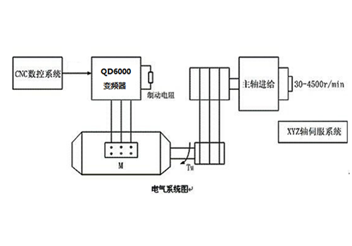 | 04 Введение в систему: В этой системе шпиндель станка с ЧПУ мощностью 4 кВт приводится в движение инвертором RVE32 мощностью 5,5 кВт, а быстрое торможение и остановка реализуются с помощью внешнего тормозного блока и тормозного резистора. Изменение скорости, вызванное изменением нагрузки, очень мало благодаря векторному управлению с разомкнутым контуром. | | ||||||||||||||||||